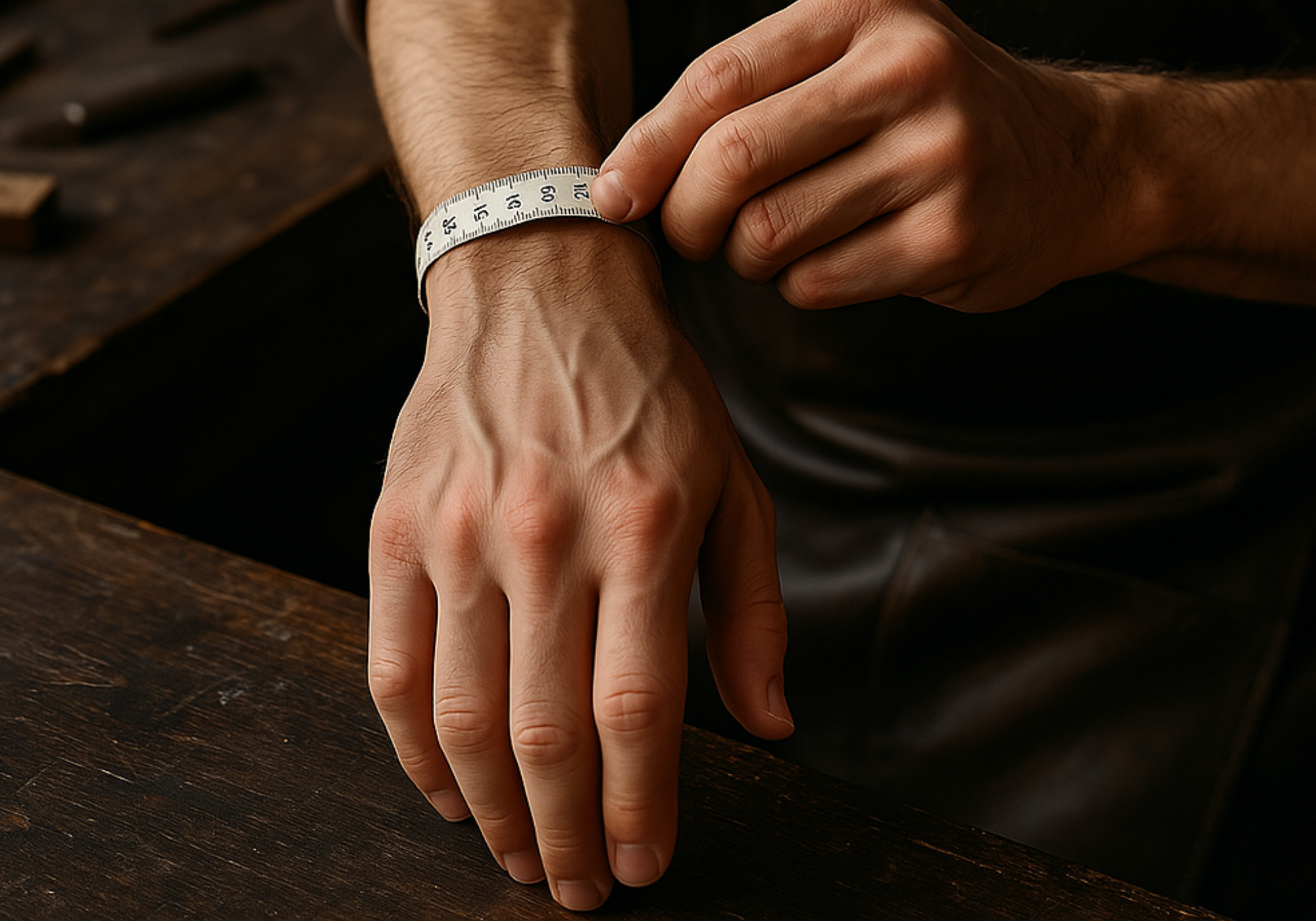 To find your bracelet size, simply measure the circumference of your wrist in centimeters using a soft measuring tape or a strip of paper.