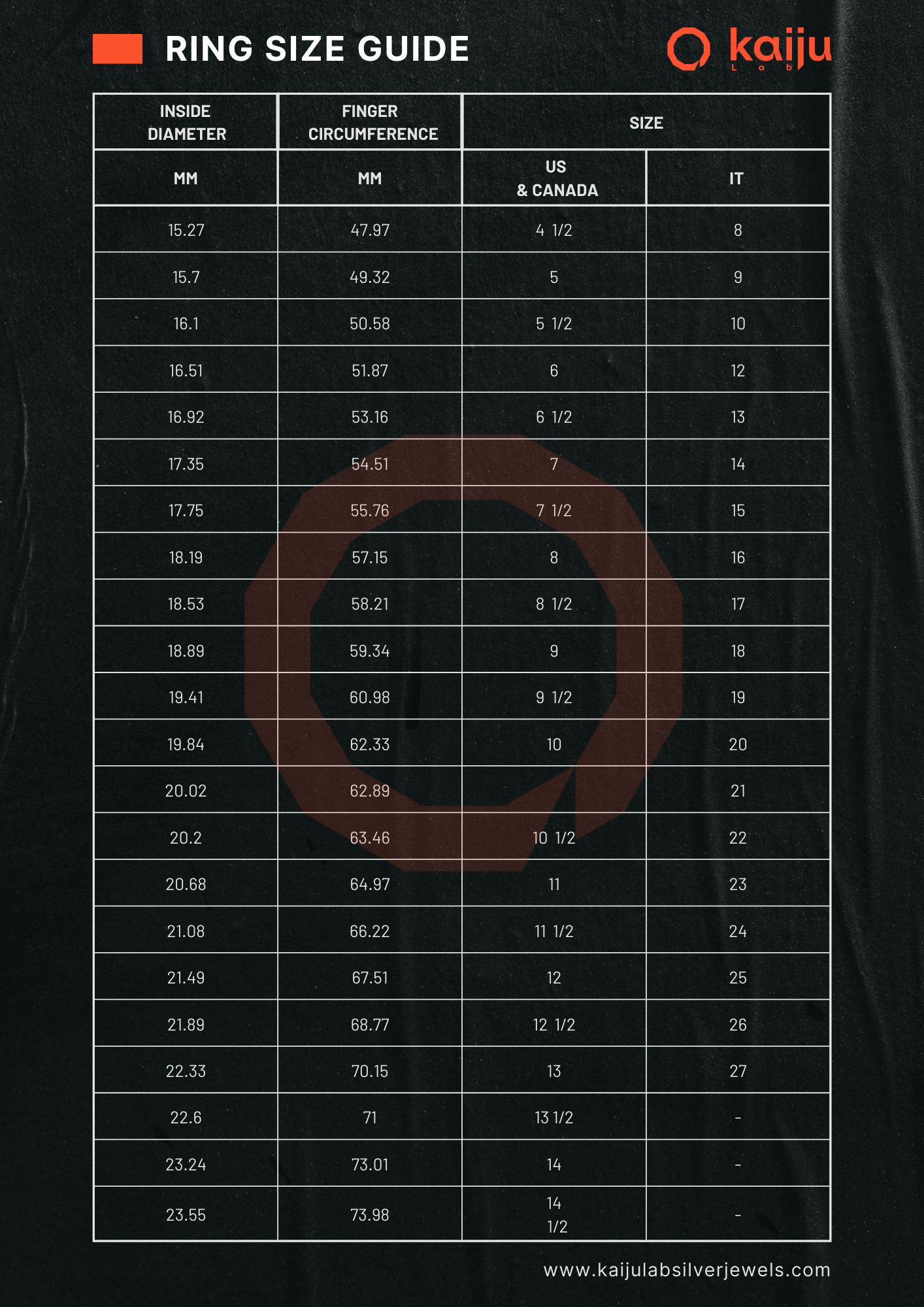 1. Measure the inner diameter or inner circumference of the ring in millimeters as accurately as possible, then compare your measurement with the size chart on the side to find your size.